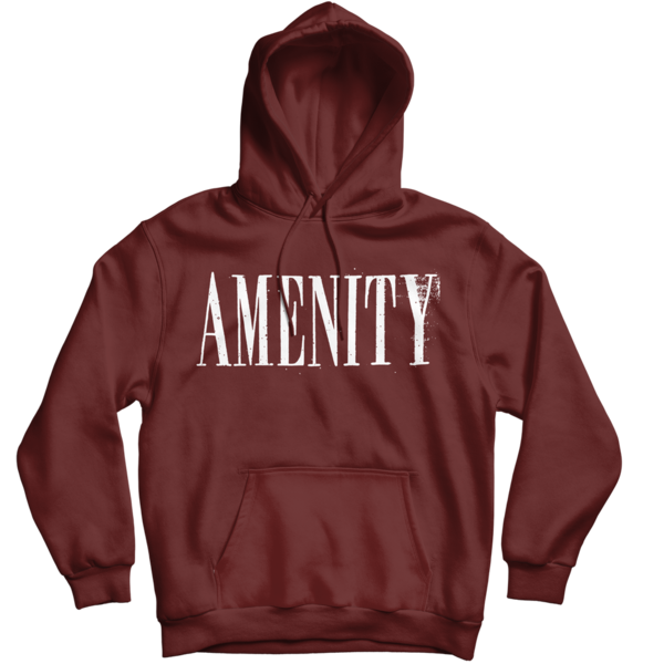 Maroon hoodie with orange ink